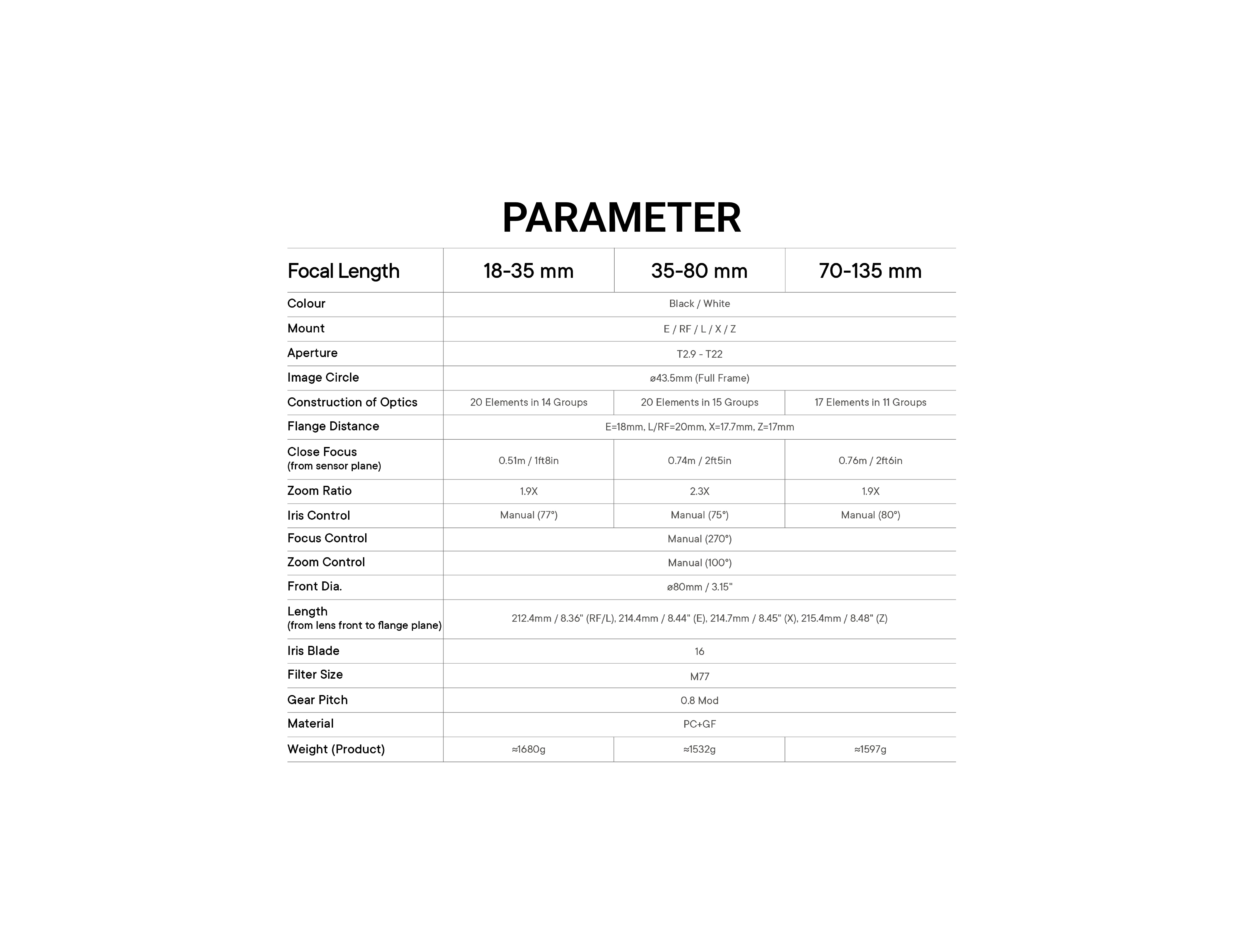 18-35 | 35-80 | 70-135MM | T2.9-22